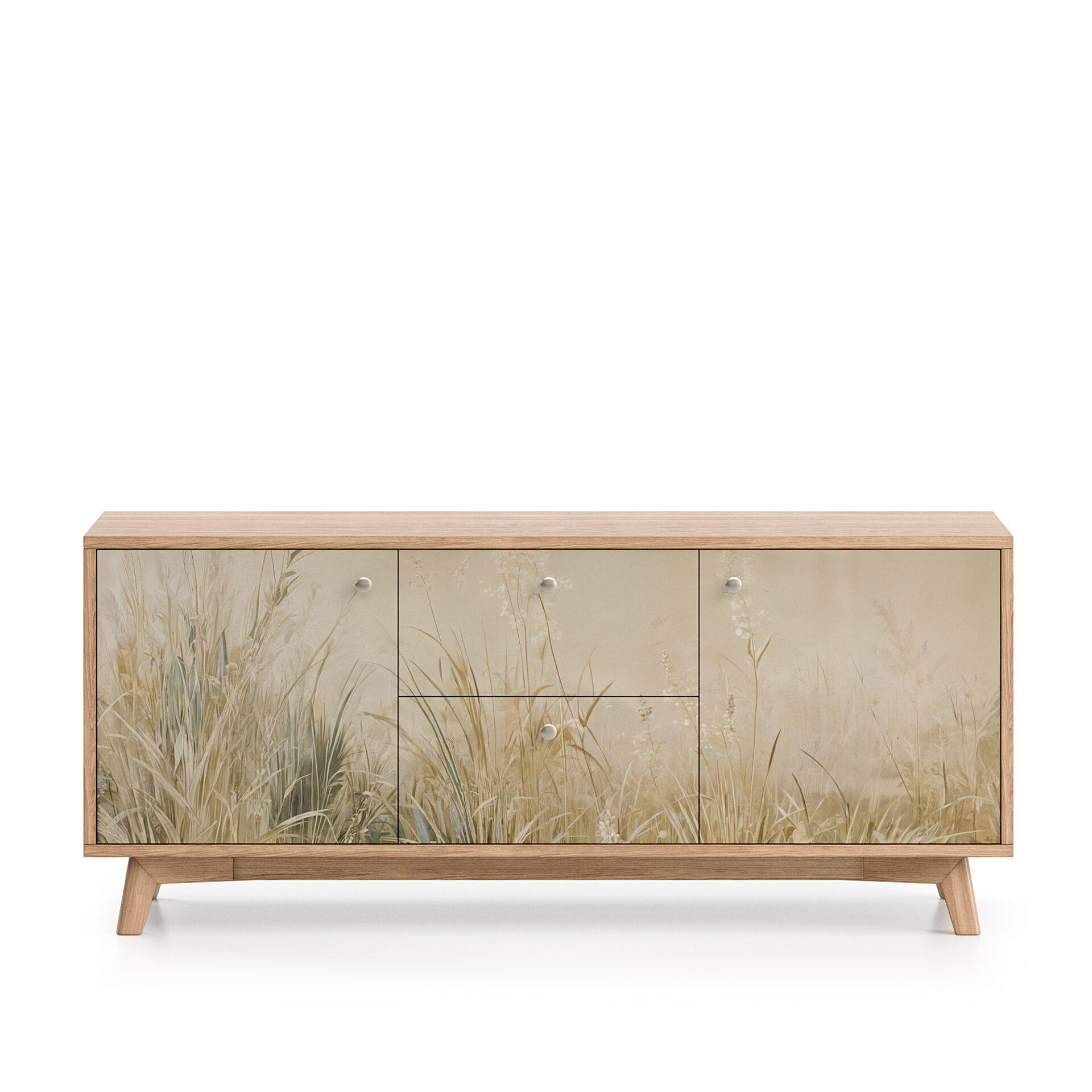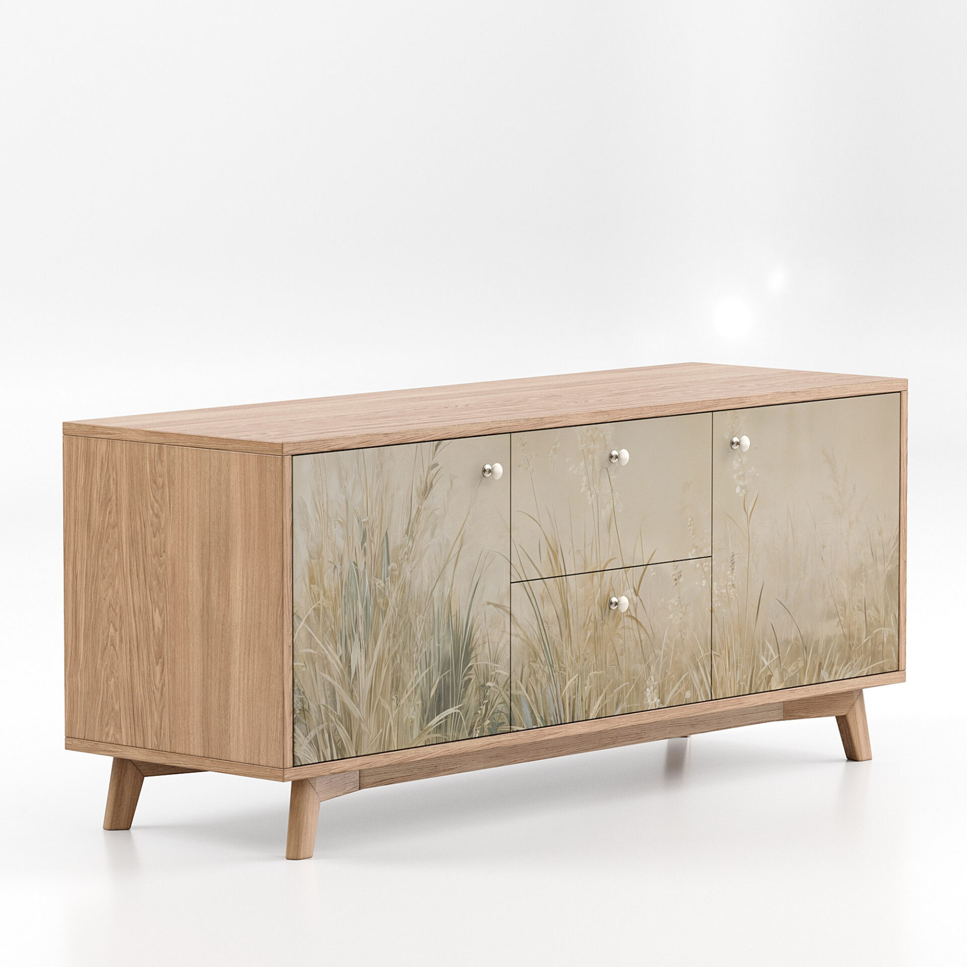 Авторские принты, украшающие фасады этой ТВ-тумбы, созданы вручную