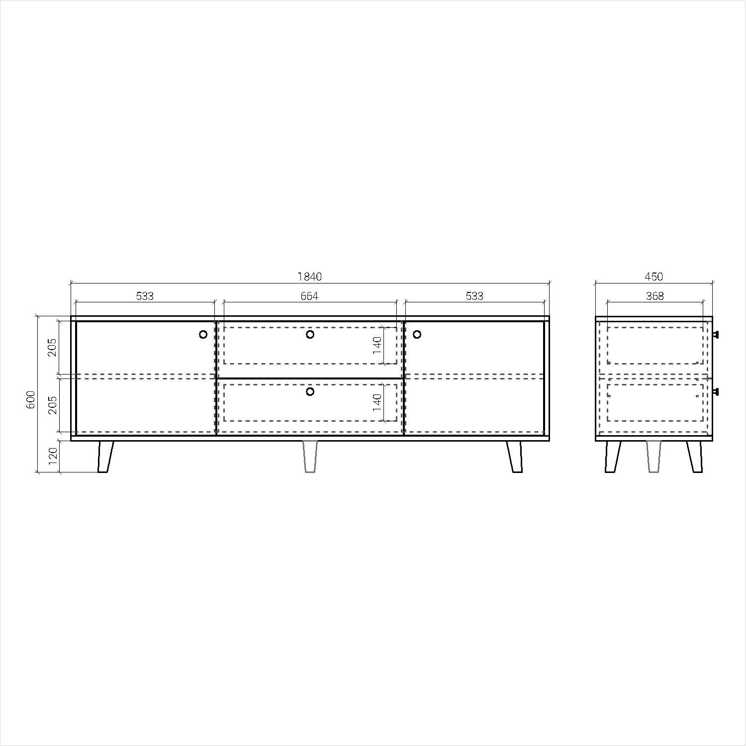 Дизайн, который легко впишется в любой современный интерьер, добавляя утонченность и легкий лоск эпохи mid-century. Создайте гармоничный образ вашего пространства, выбрав идеальное исполнение из более чем 2500 вариантов отделок. Тумба эффективно организует пространство: вместительные ящики и просторные полки, скрытые за фасадами, помогут поддерживать порядок и разместить медиатехнику, книги и другие вещи.