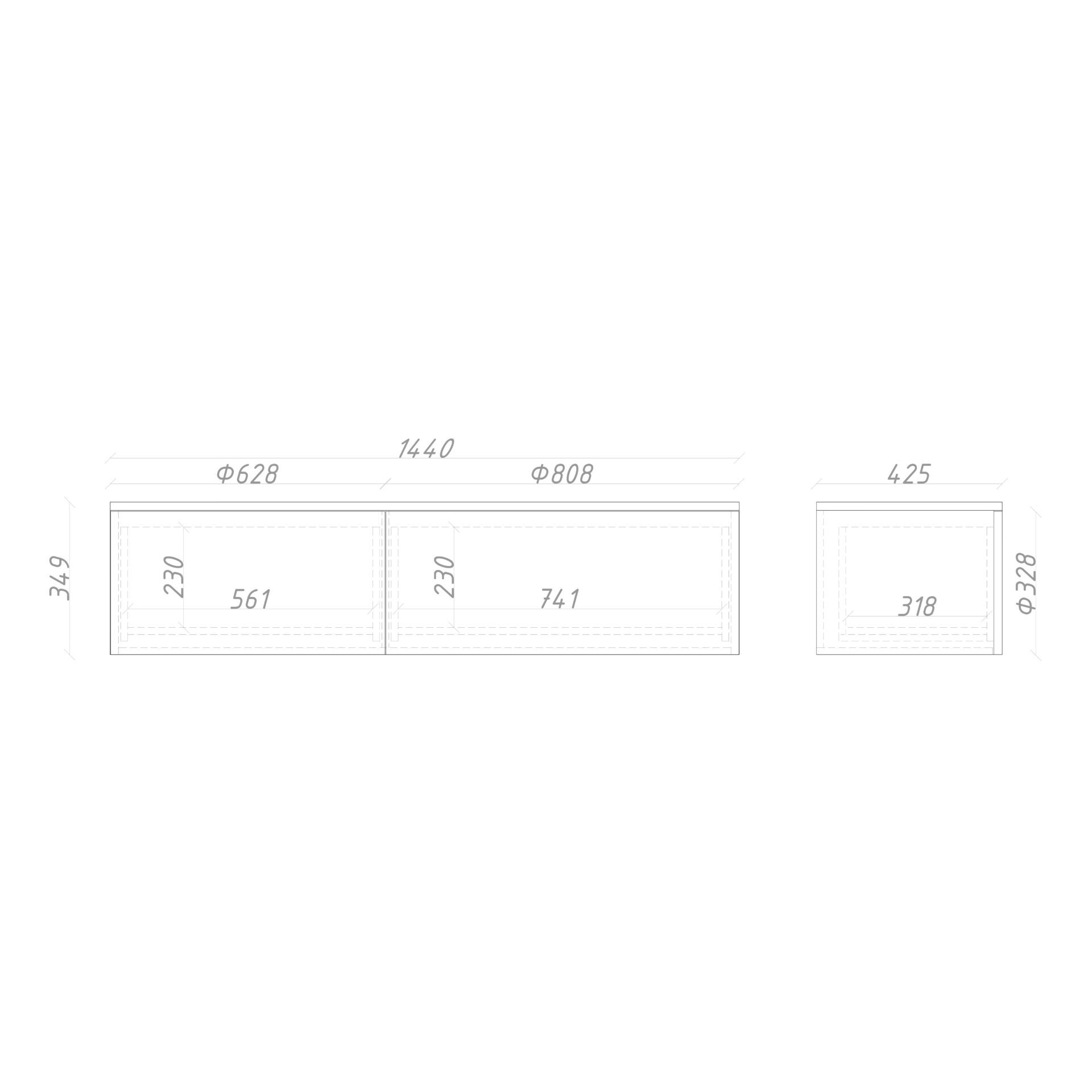 нескольких предметов: консоли, подвесные тумбы и пеналы разной высоты, комоды,