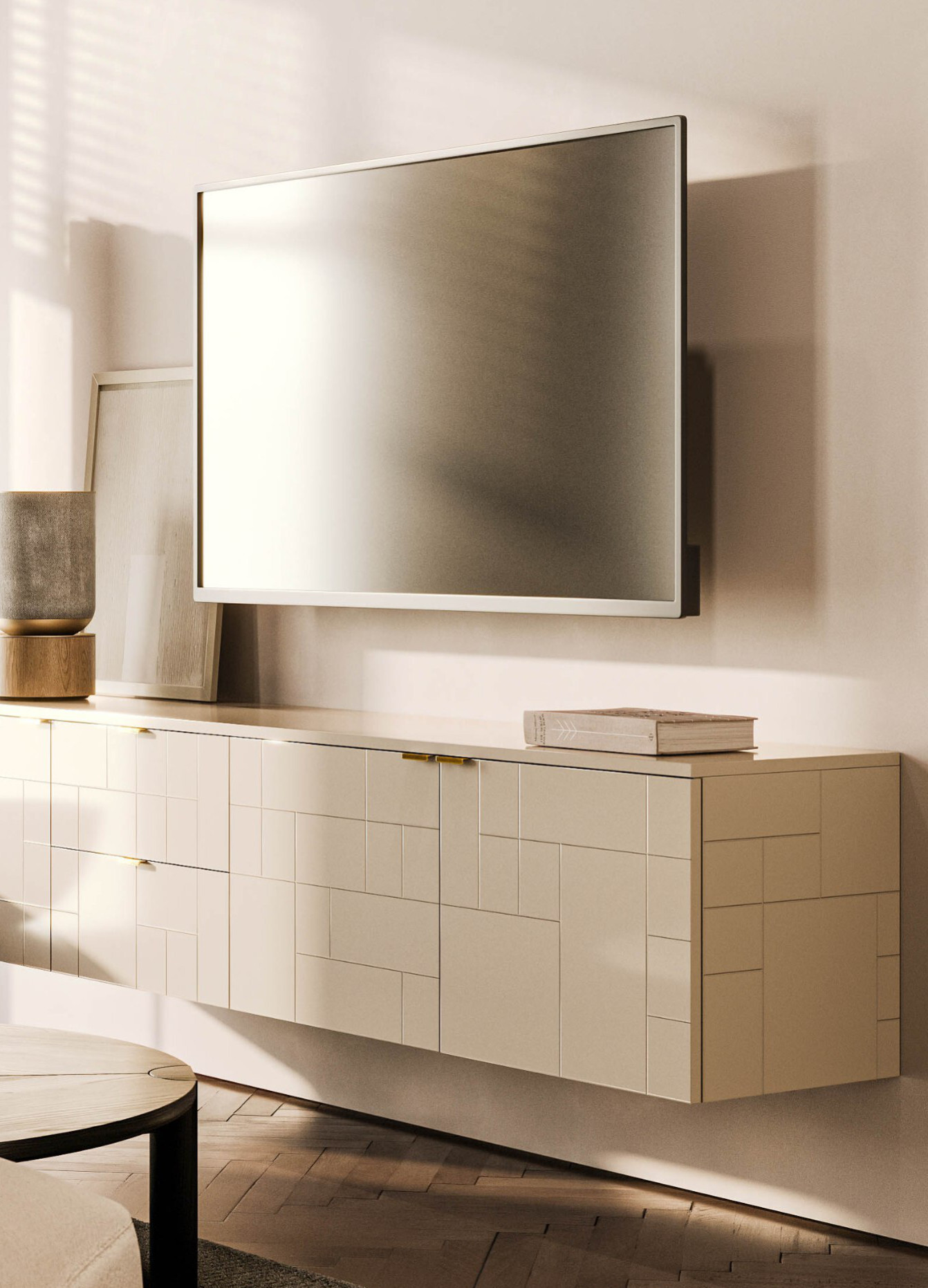 нескольких предметов: консоли, подвесные тумбы и пеналы разной высоты, комоды,