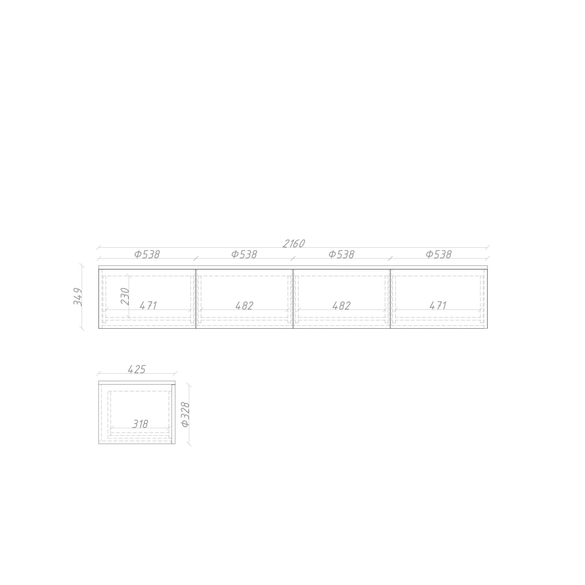 нескольких предметов: консоли, подвесные тумбы и пеналы разной высоты, комоды,