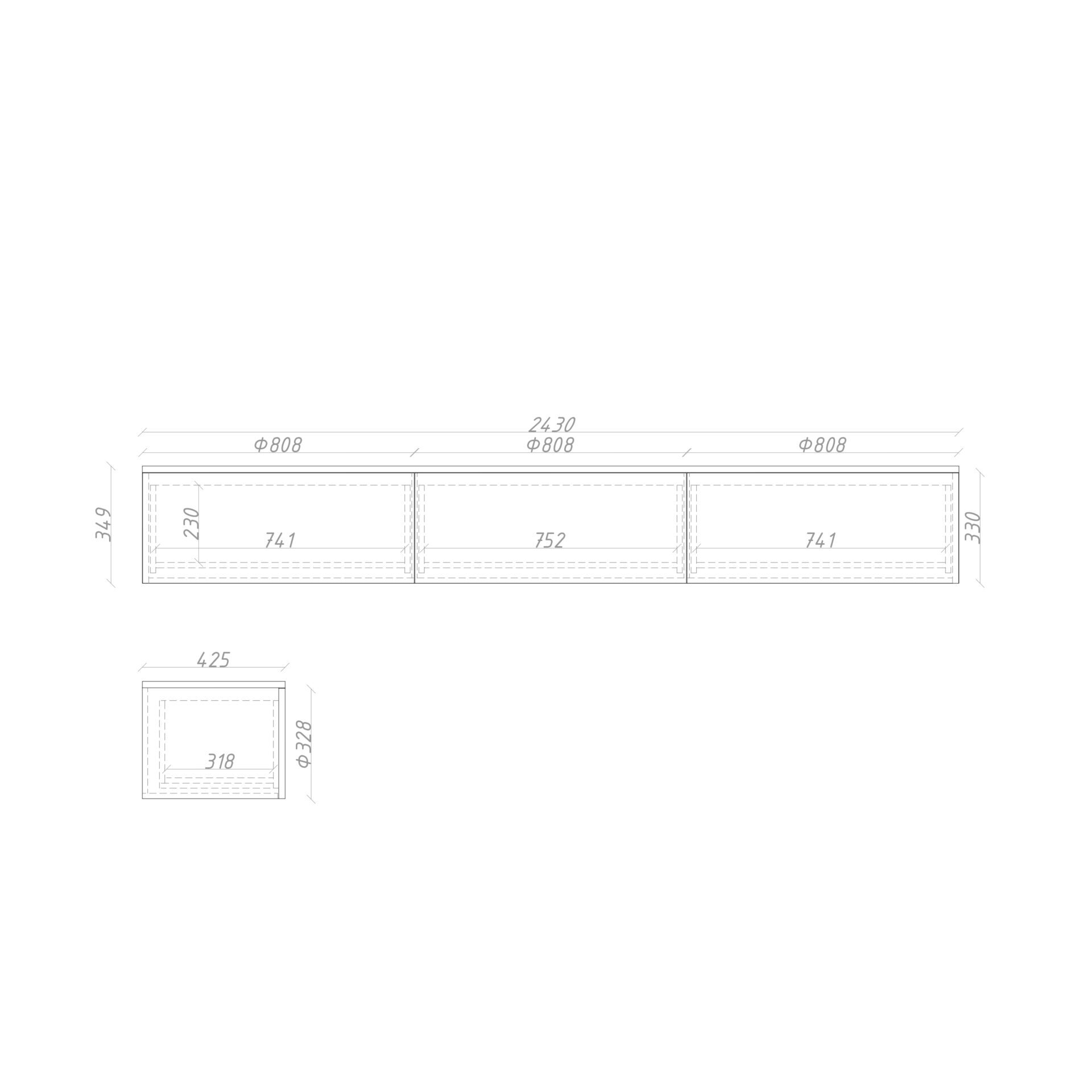 пространство комнаты. Фасады и боковые