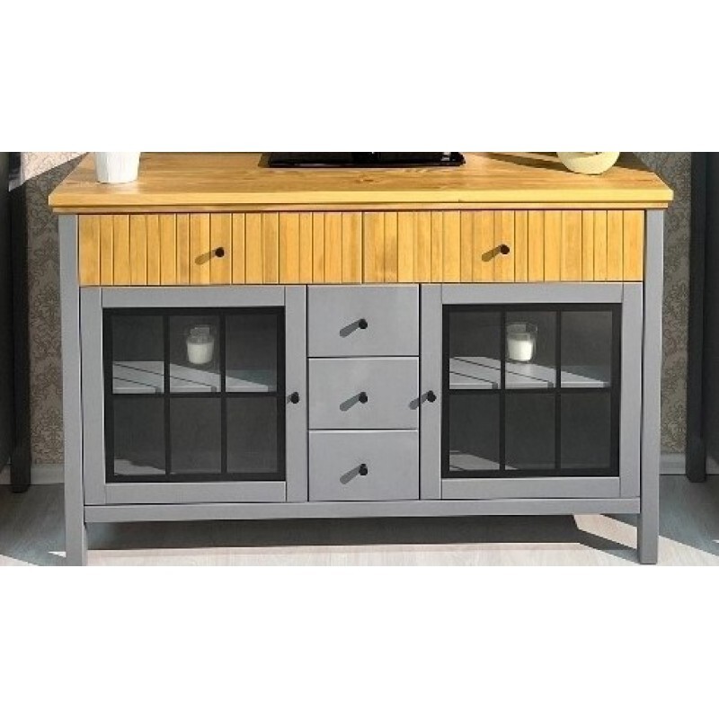 Тумба «Сканди» 2 стеклянные двери и ящики серый 7046/антик