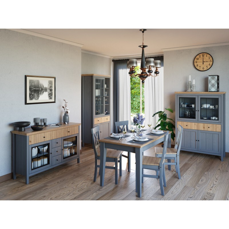 Коллекция «Сканди» выполнена в скандинавском стиле из массива сосны и представлена в двух цветовых вариантах: белый воск/антик и серый воск Ral 7046/антик.