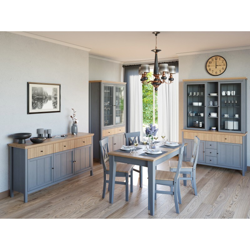 Коллекция «Сканди» выполнена в скандинавском стиле из массива сосны и представлена в двух цветовых вариантах: белый воск/антик и серый воск Ral 7046/антик.
