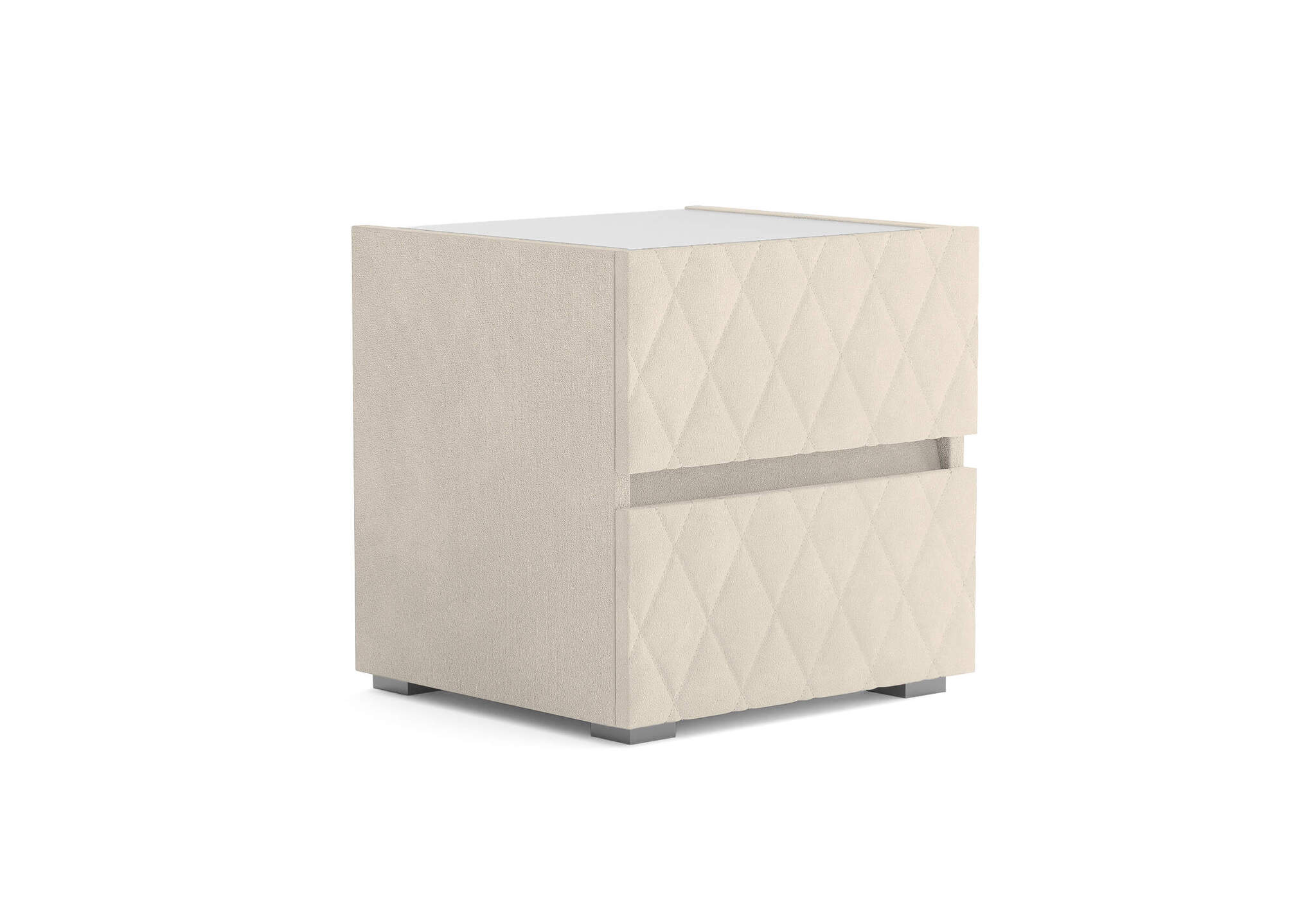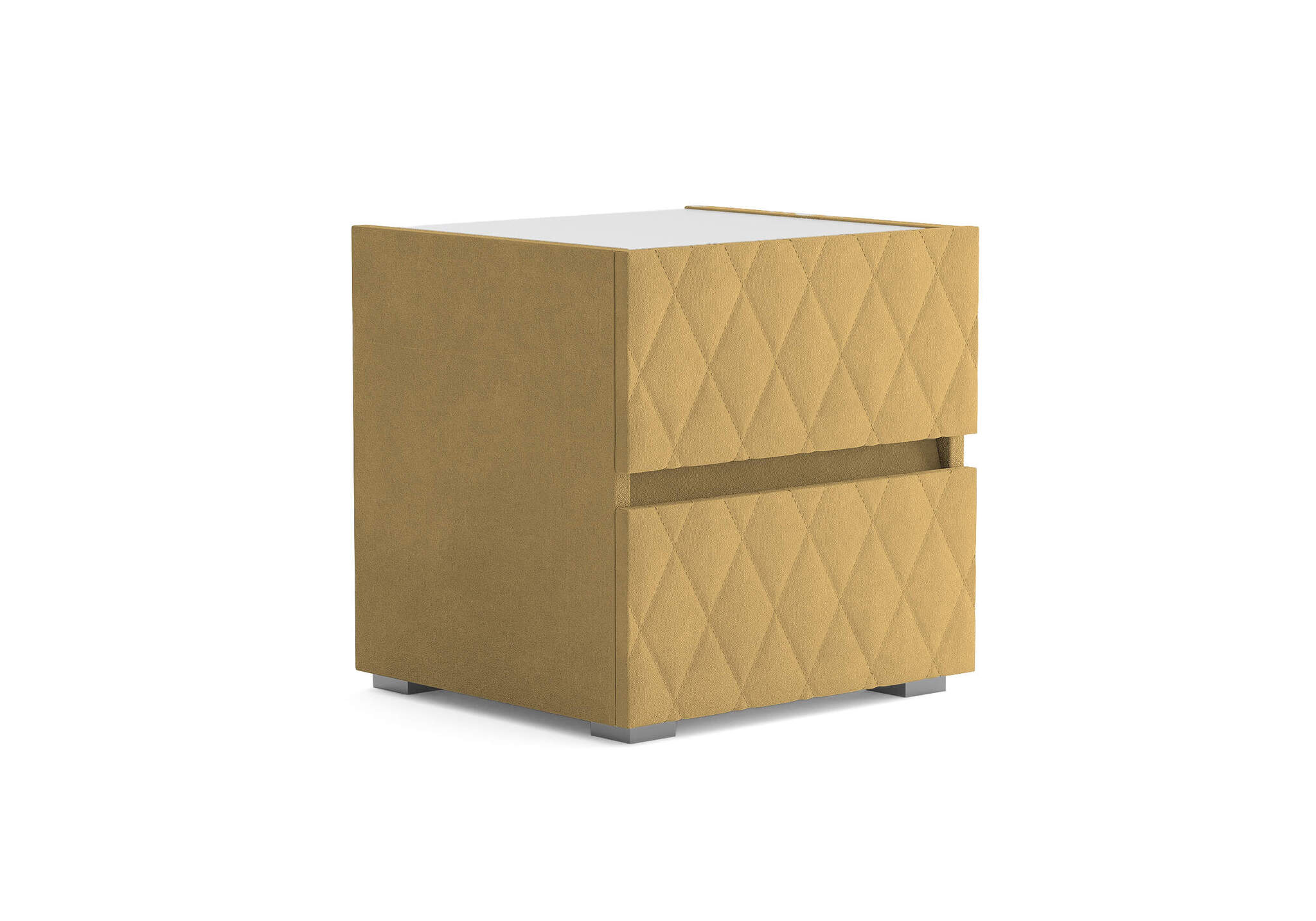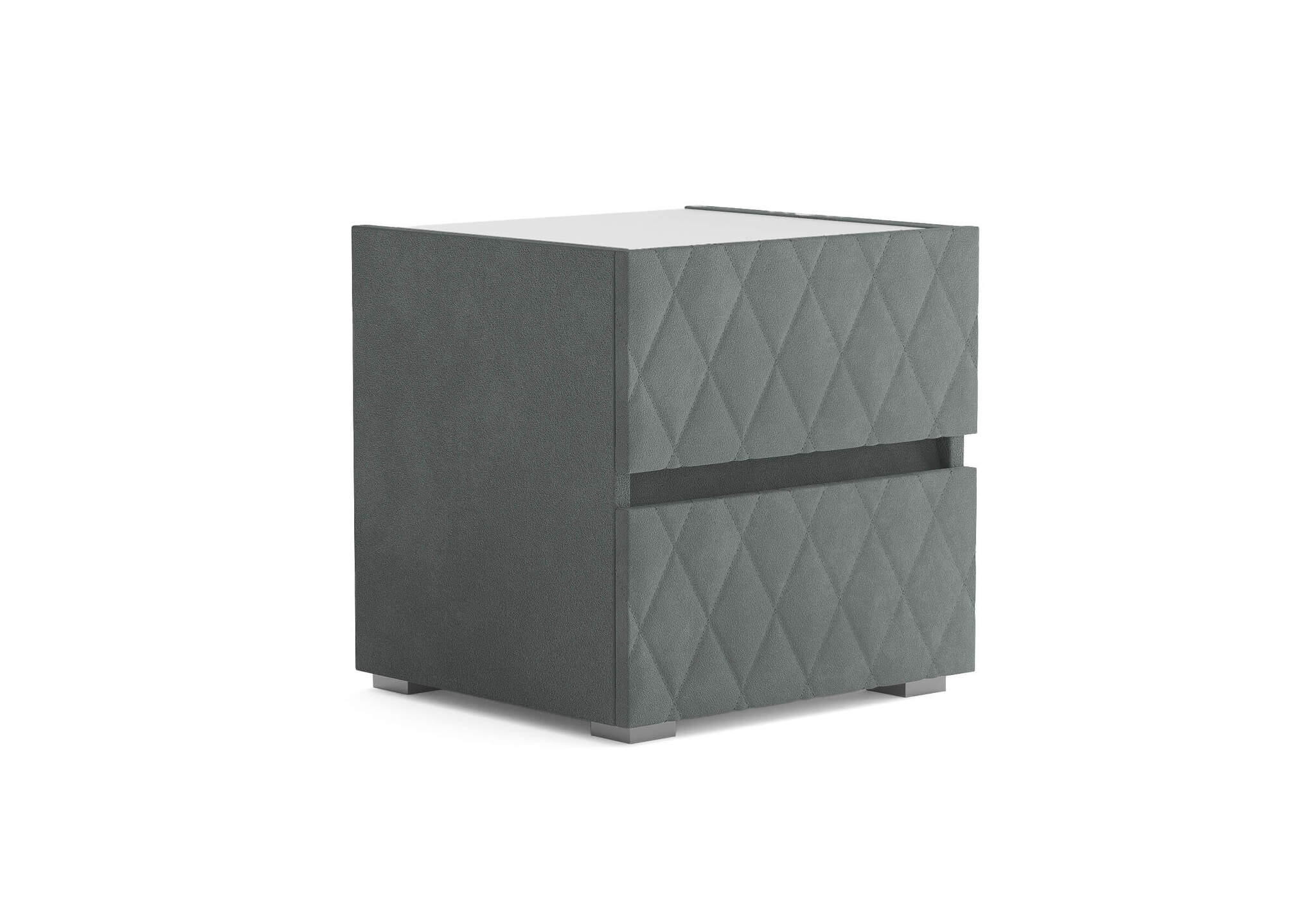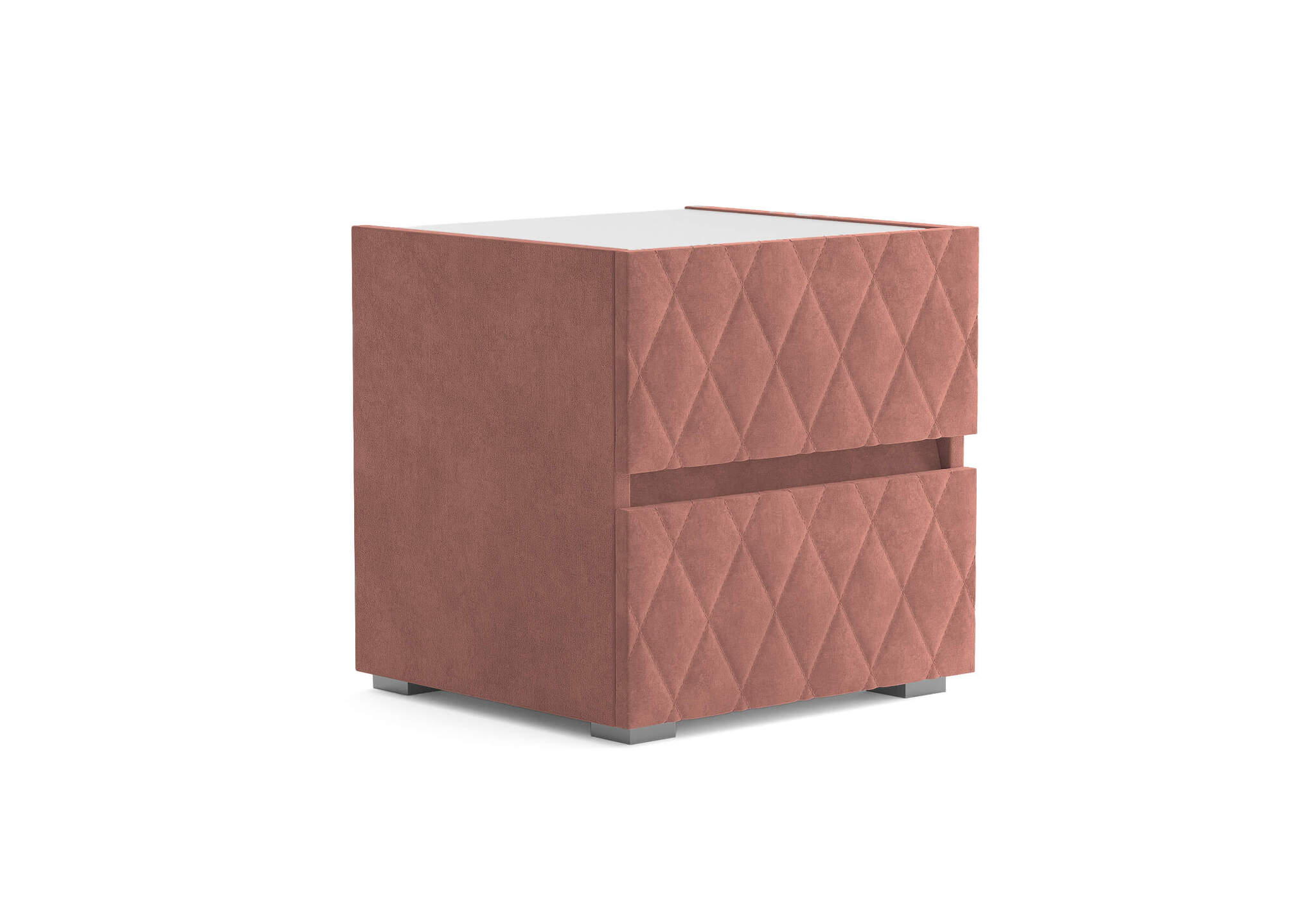 Тумба с мягкими фасадами, украшенными изысканной стежкой в виде ромбов, представляет собой идеальное сочетание утонченного дизайна и функциональности. Два выдвижных ящика с направляющими скрытого монтажа оснащены доводчиками. Тумбу дополнительно можно укомплектовать стеклянной столешницей. Широкий выбор фактур и цветов исполнения.