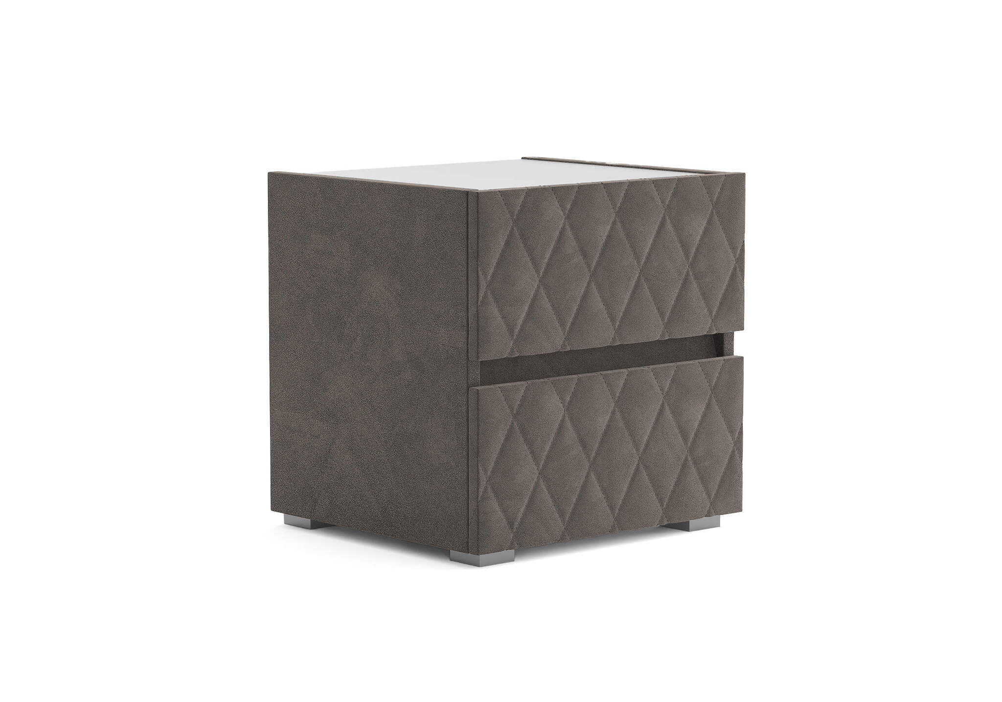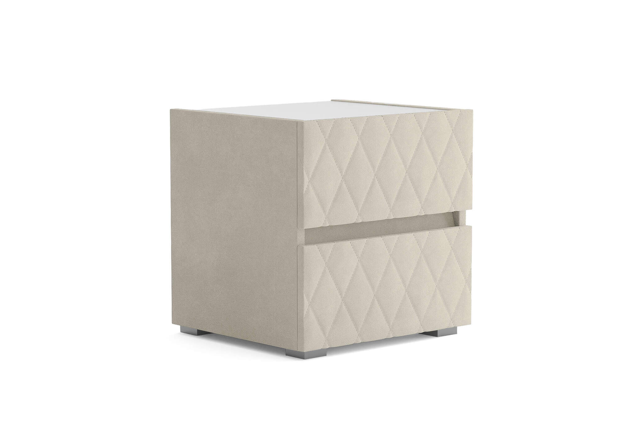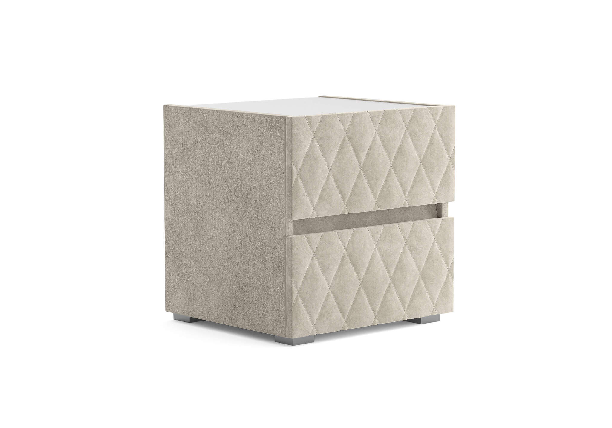 Тумба с мягкими фасадами, украшенными изысканной стежкой в виде ромбов, представляет собой идеальное сочетание утонченного дизайна и функциональности. Два выдвижных ящика с направляющими скрытого монтажа оснащены доводчиками. Тумбу дополнительно можно укомплектовать стеклянной столешницей. Широкий выбор фактур и цветов исполнения.
