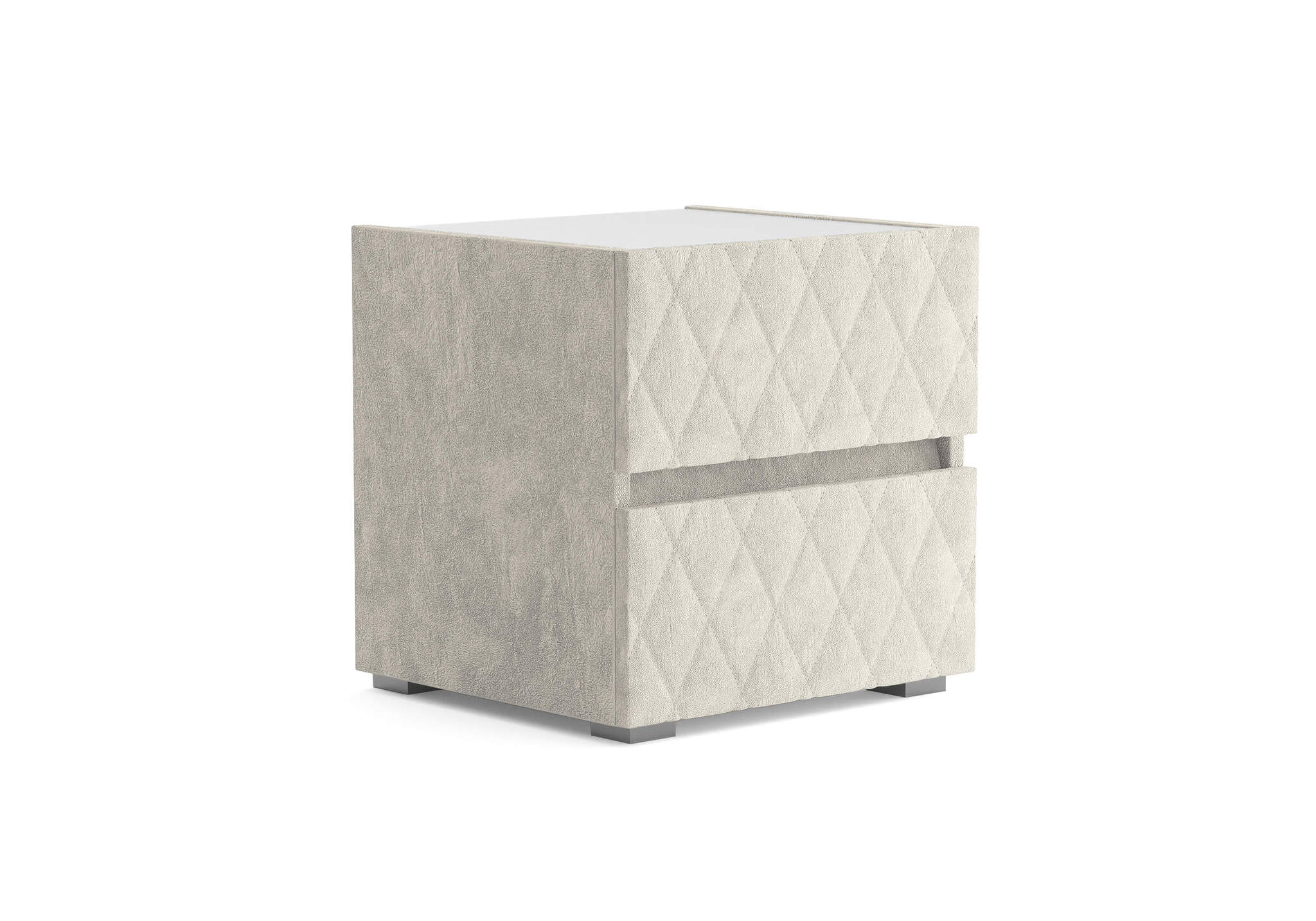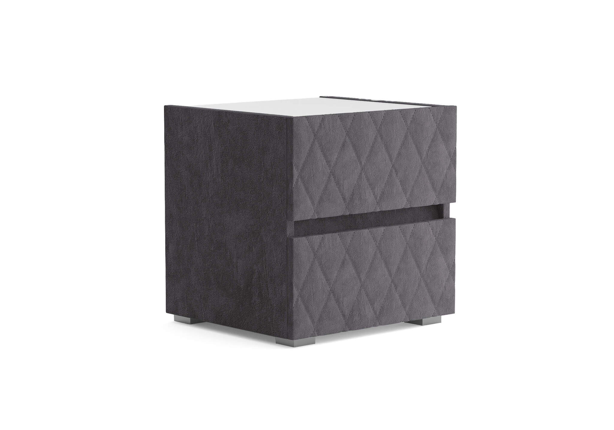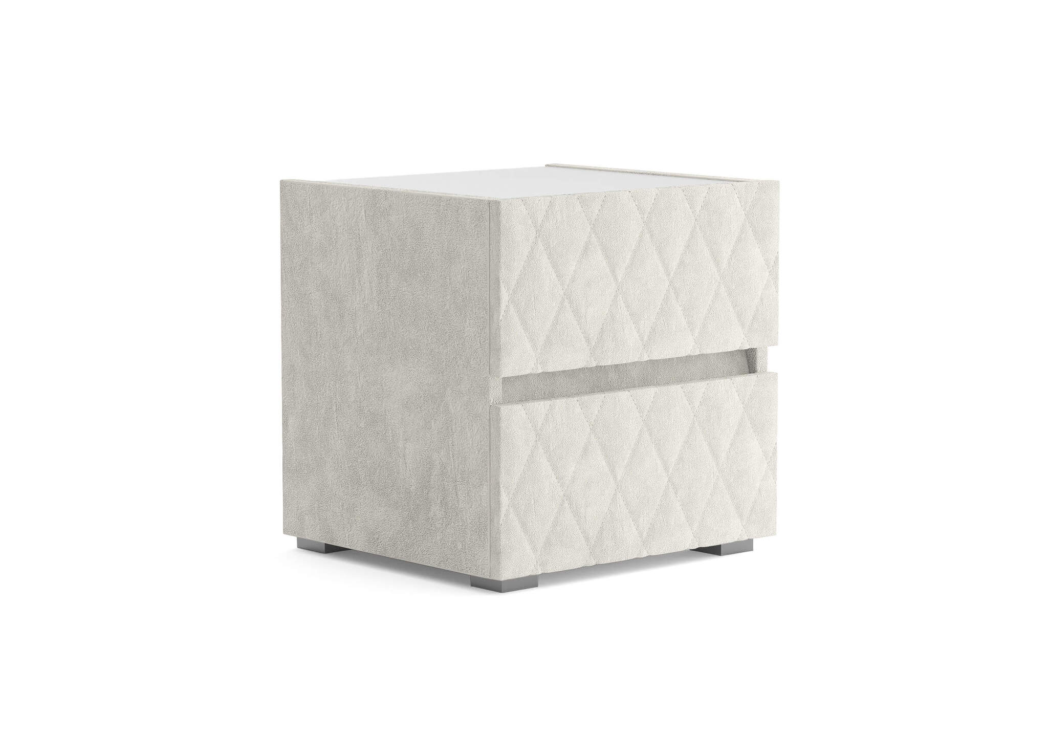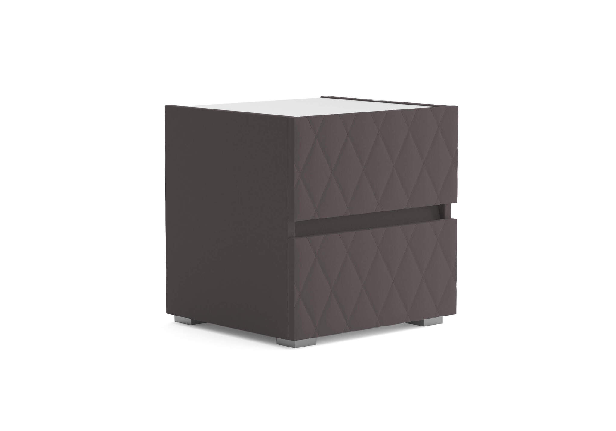 Тумба с мягкими фасадами, украшенными изысканной стежкой в виде ромбов, представляет собой идеальное сочетание утонченного дизайна и функциональности. Два выдвижных ящика с направляющими скрытого монтажа оснащены доводчиками. Тумбу дополнительно можно укомплектовать стеклянной столешницей. Широкий выбор фактур и цветов исполнения.