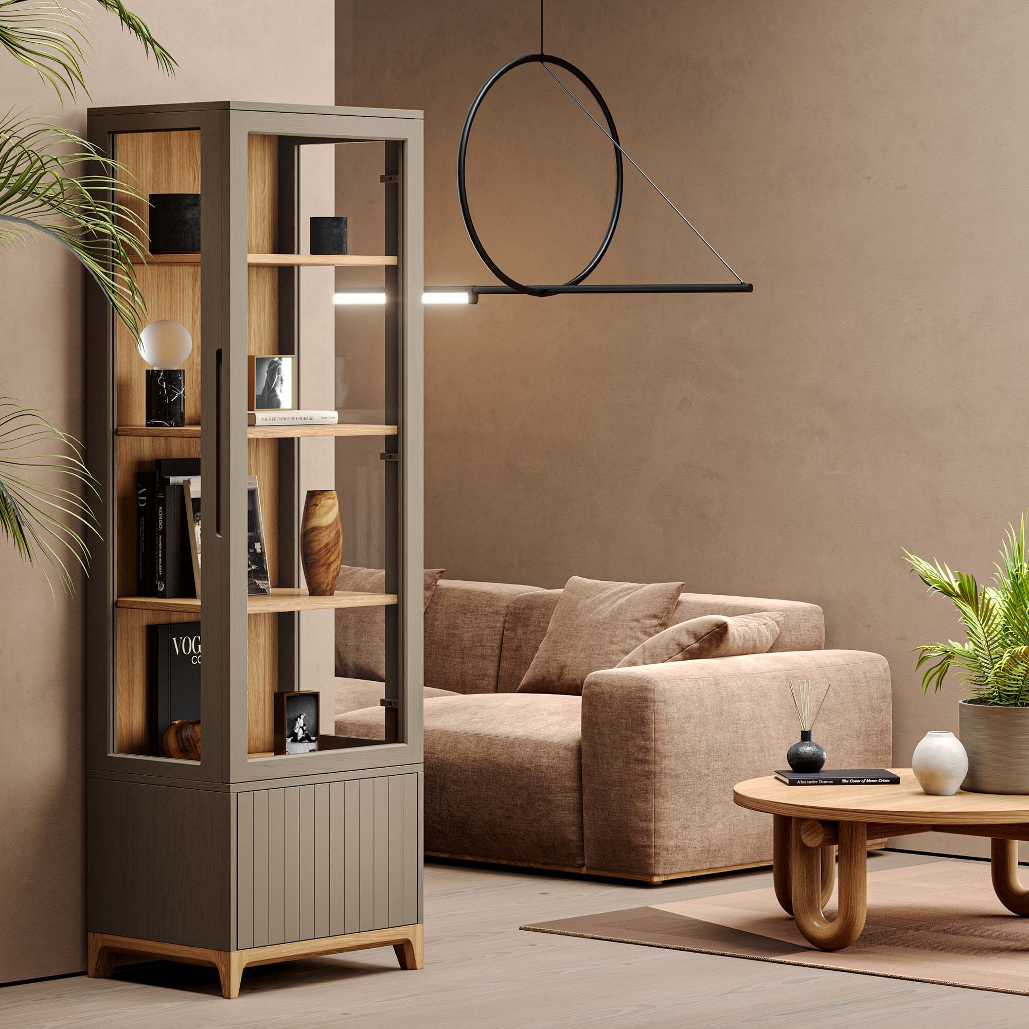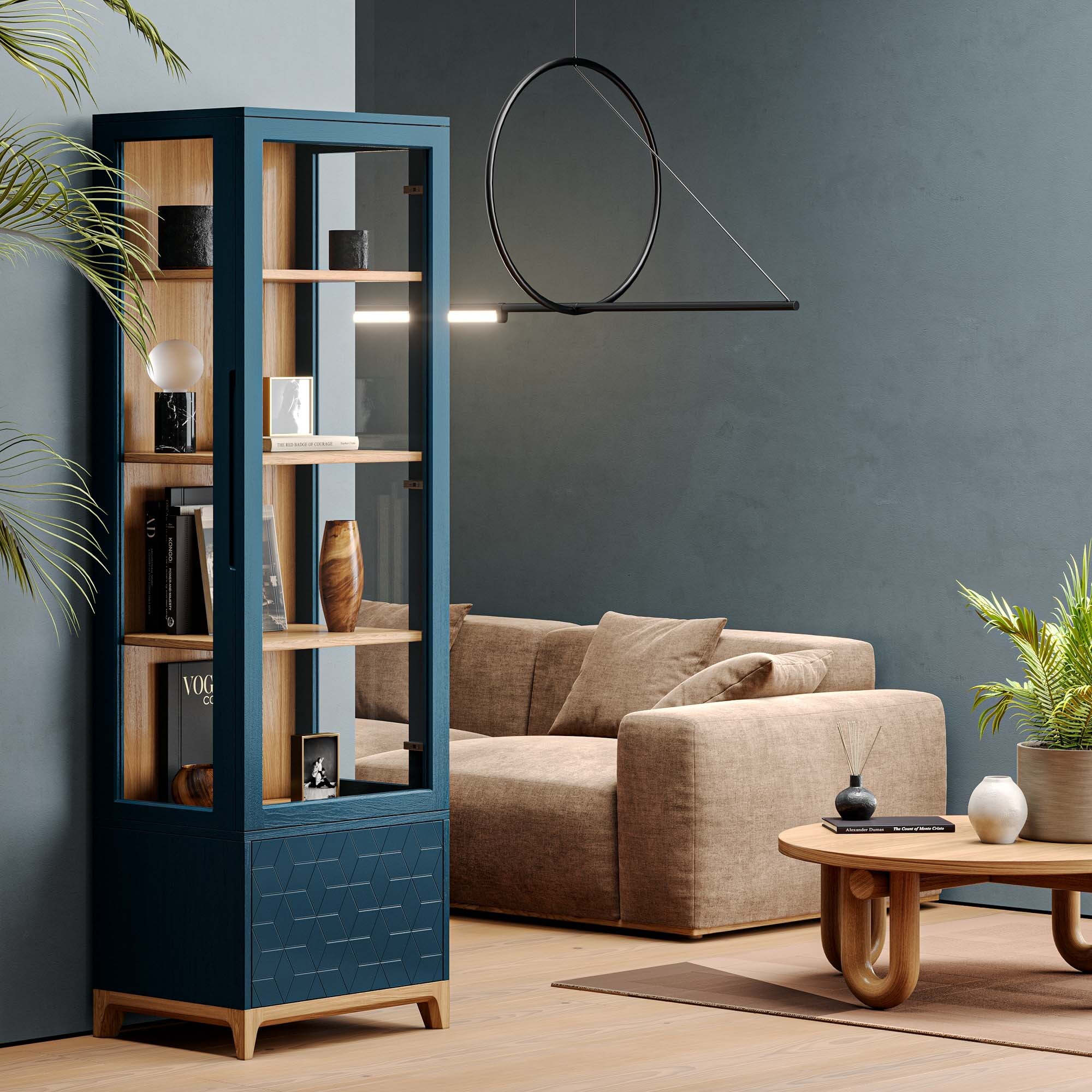 Узкая витрина CS161 из коллекции CASE станет украшением любого интерьера. Компактные габариты позволят разместить ее даже в небольших пространствах. Элегантные стеклянные фасады с трех сторон придают легкость конструкции и защищают от пыли хранящиеся в ней предметы. Витрина состоит из четырех секций с полками и выдвижным ящиком, который скрыт за фасадом с авторской гравировкой. Витрину можно использовать как самостоятельно, так и собрать гарнитур из нескольких предметов, формируя завершенный и благородный интерьер.