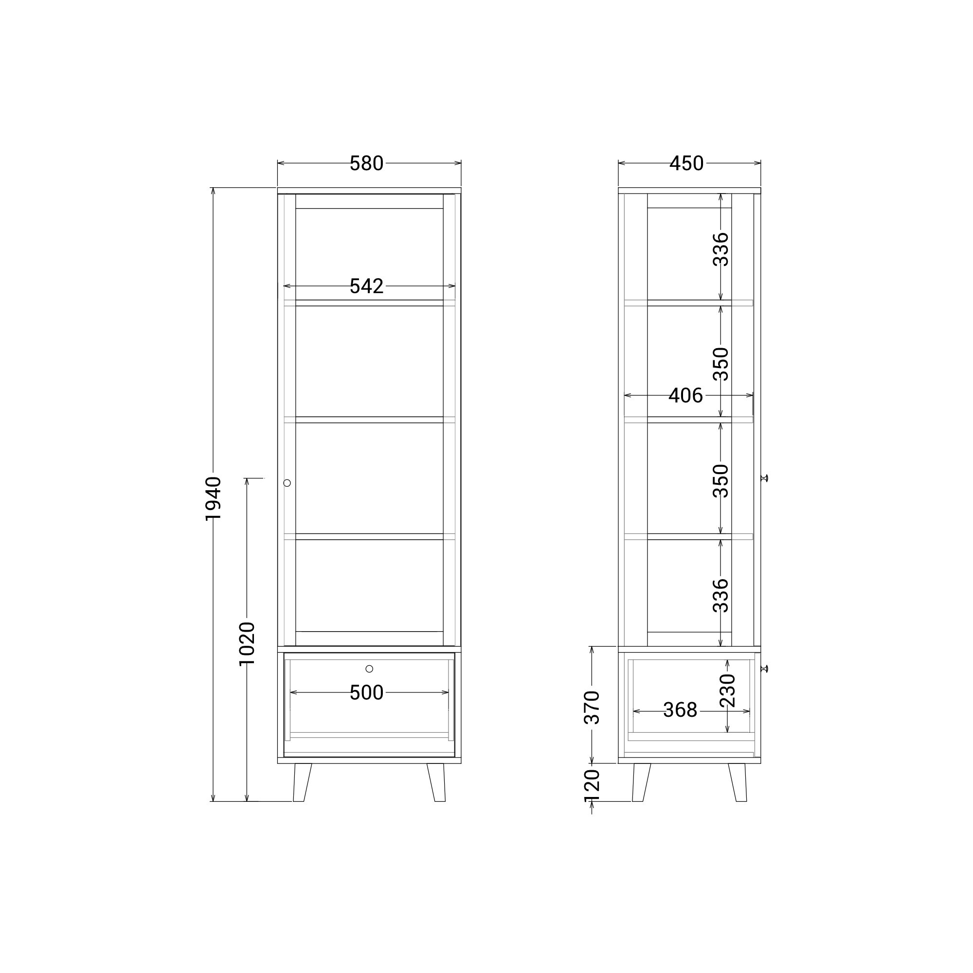 Полки из МДФ, покрыты натуральным шпоном дуба и выдерживают нагрузку до 30 кг;