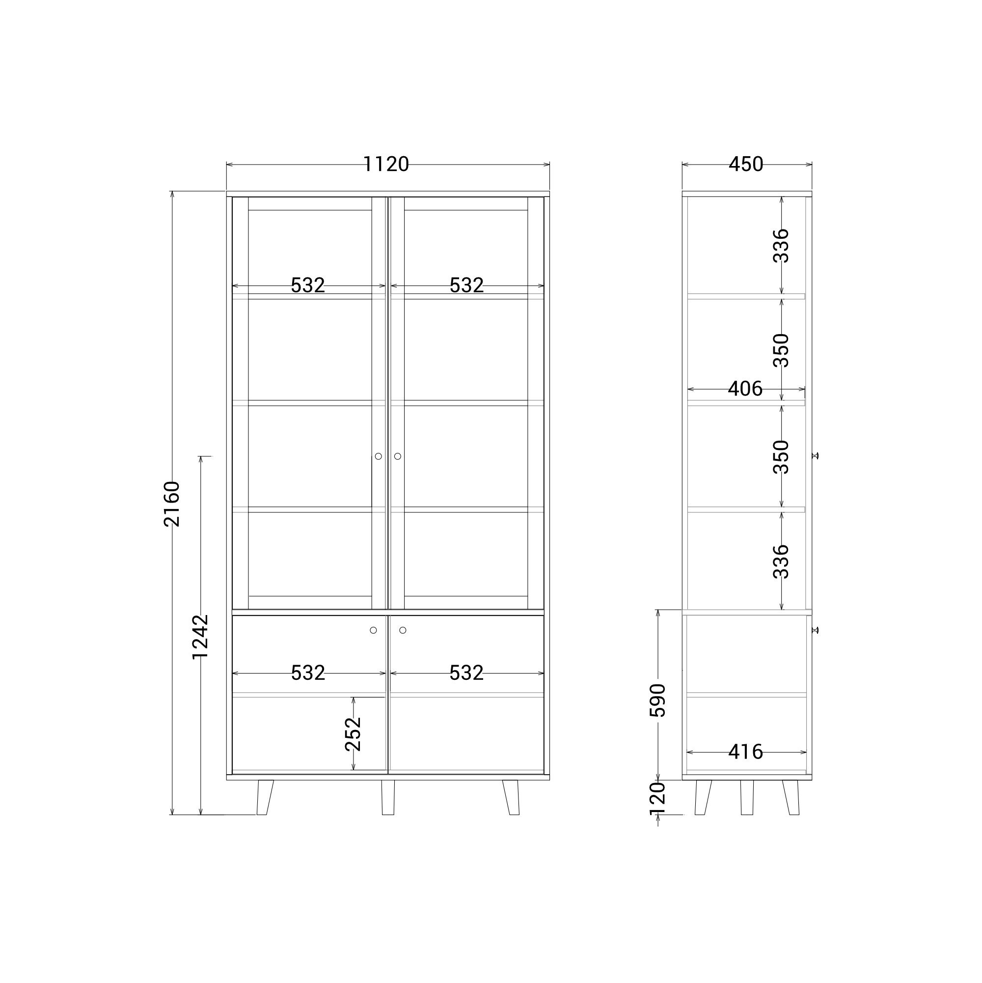 Витрина TWIN на изящных ножках — предмет, который найдет место в разных интерьерах, вне зависимости от стиля. В нижней секции найдется место для объемных и весомых вещей, а на восьми полках под стеклянными фасадами — для декора, книг, бокалов и других мелочей.