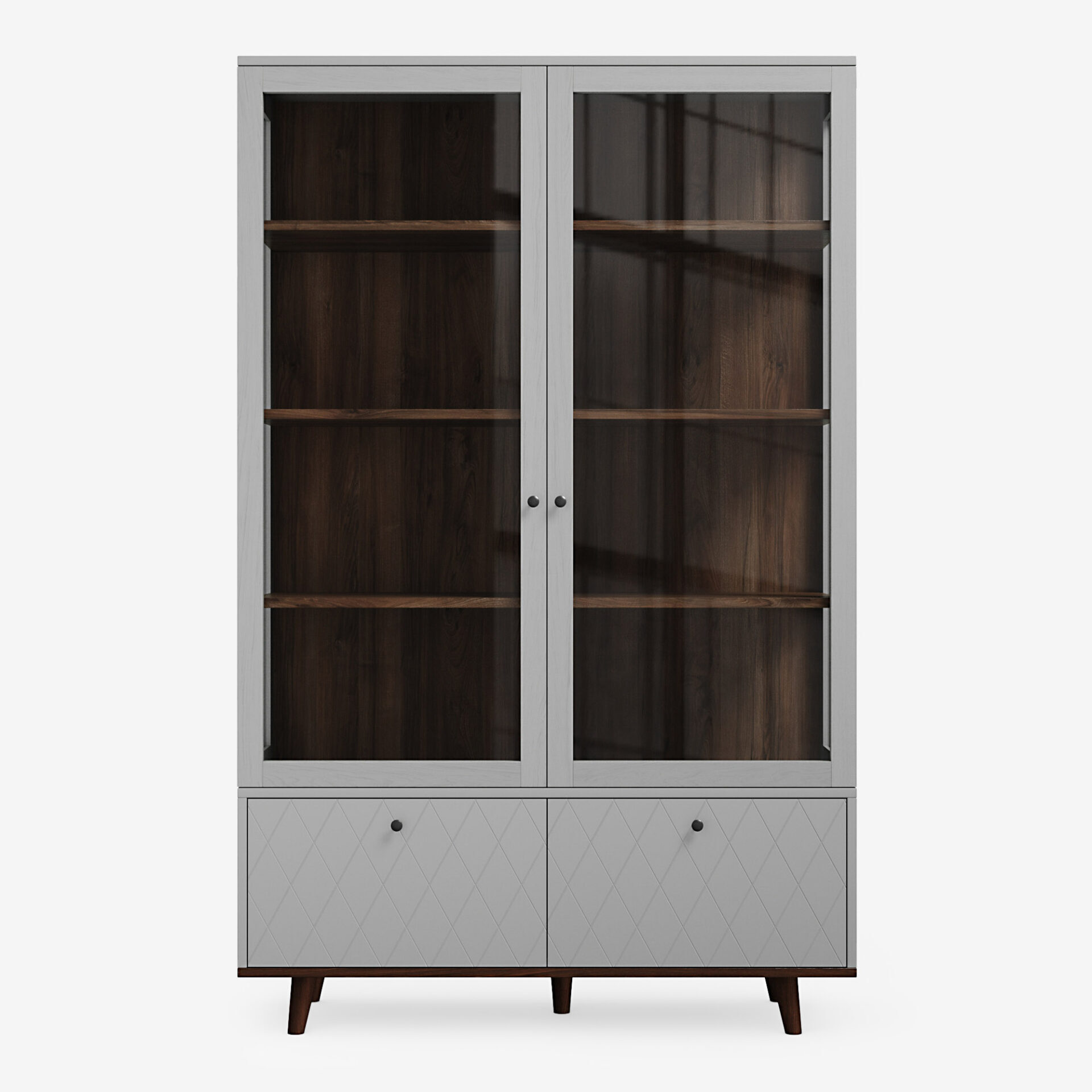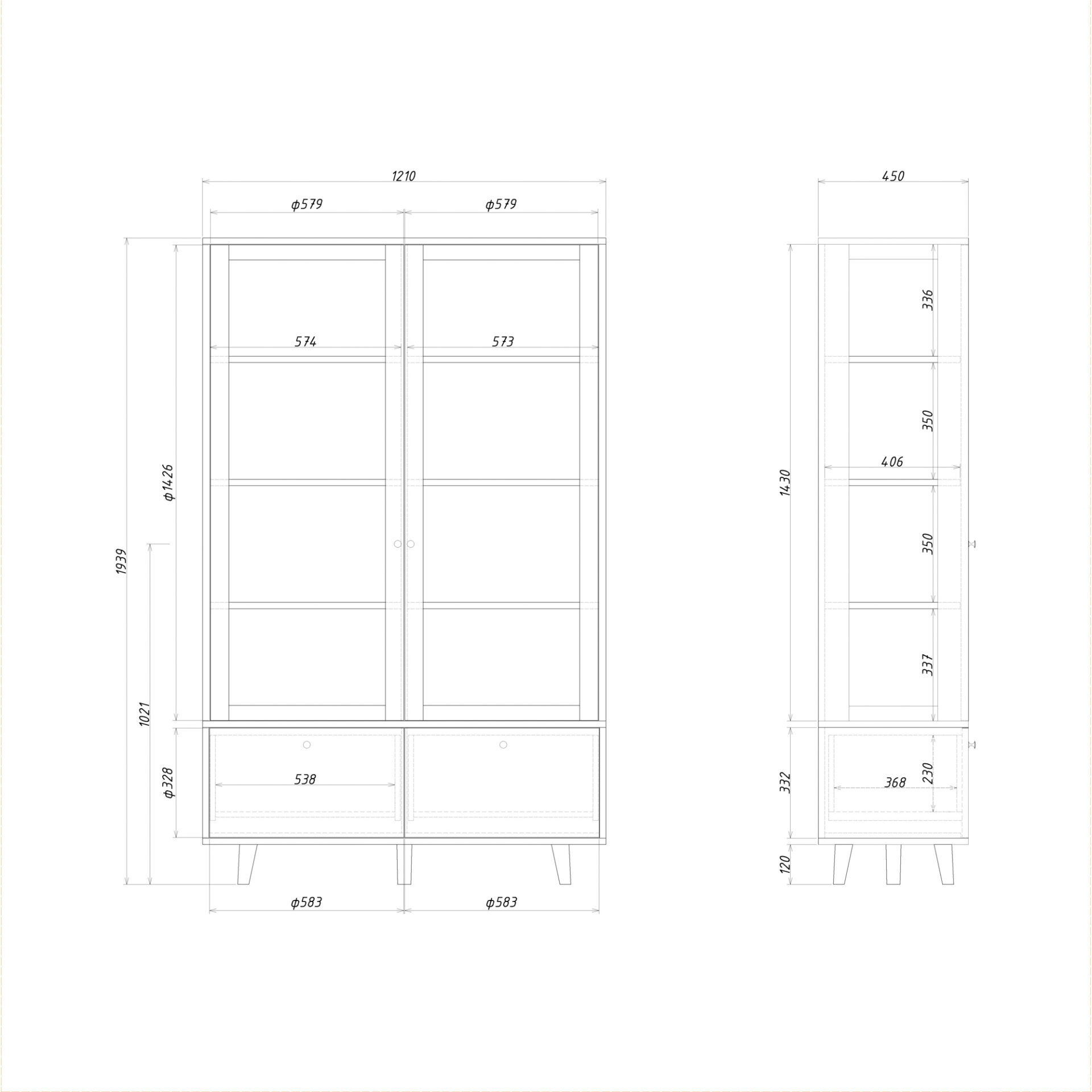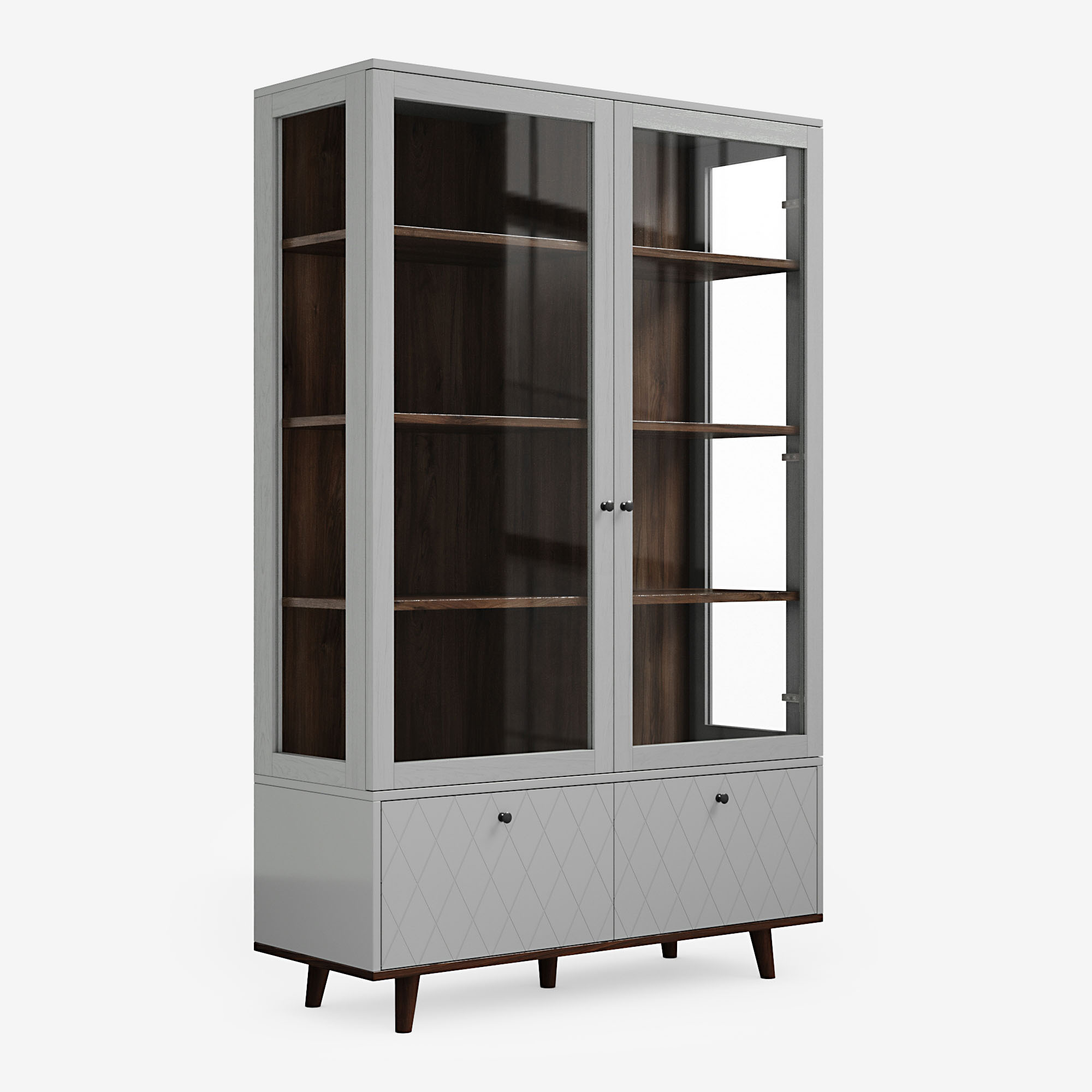 Витрина TWIN с изящными ножками и стеклянными фасадами поможет организовать