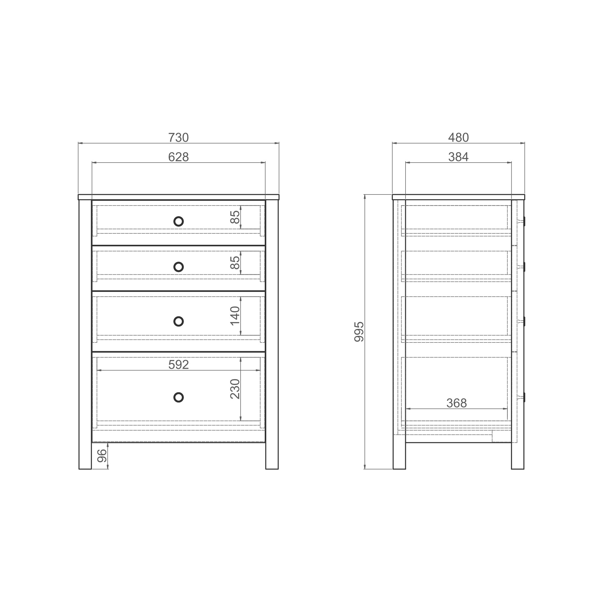 Четыре вместительных ящика создают универсальную систему для хранения одежды, аксессуаров и домашних мелочей. Усиленные каркасы выдерживают до 25 кг каждый, а доводчики Hettich обеспечивают плавное и бесшумное закрывание. Идеальная глубина и высота комода позволяют разместить его даже в компактном пространстве.