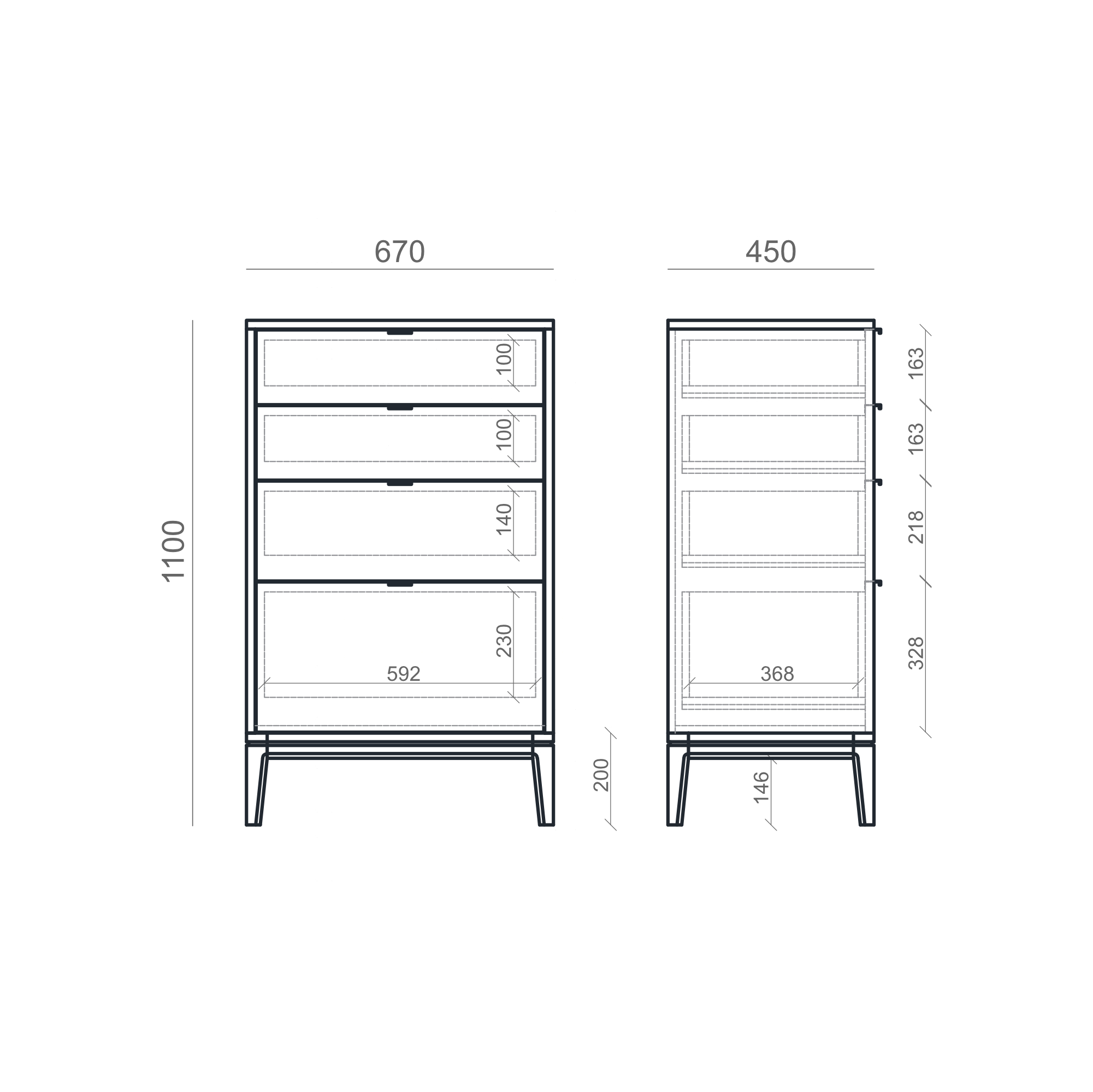 Четыре вместительных выдвижных ящика создают универсальную систему для хранения одежды, белья и аксессуаров.