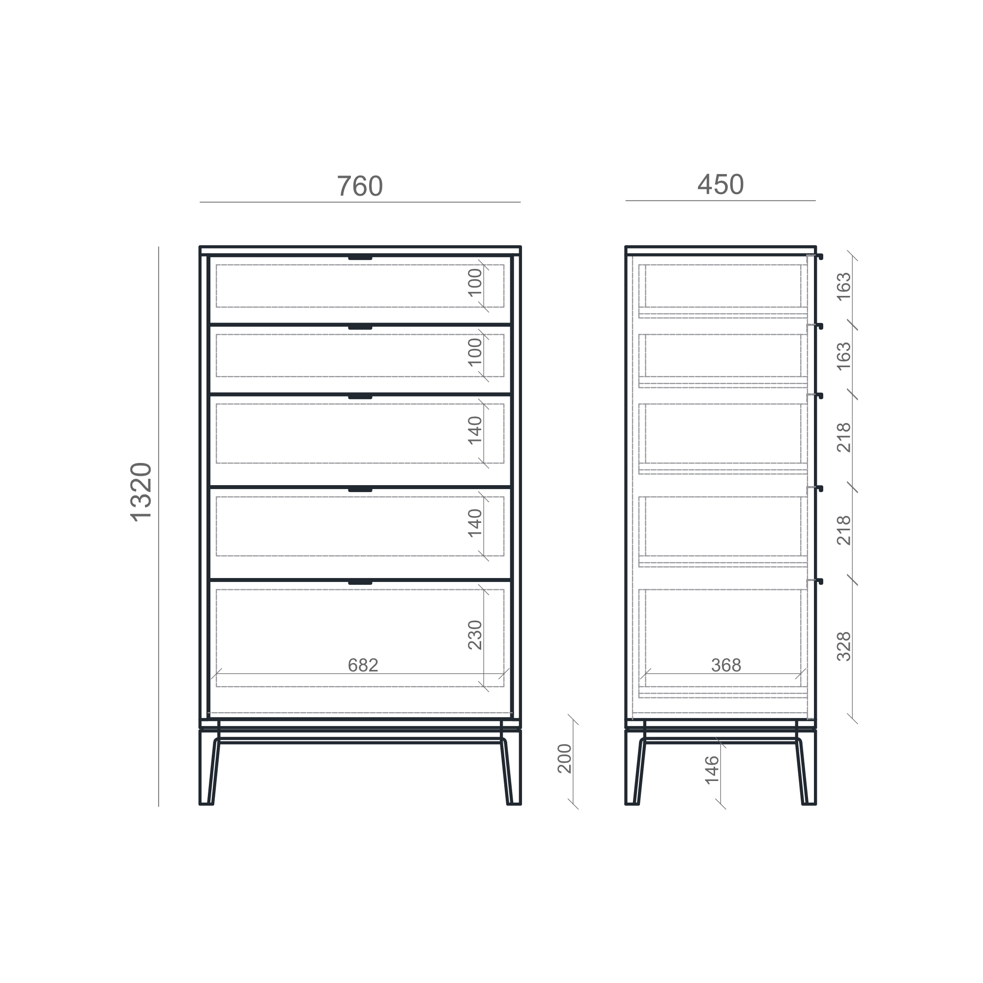 Пять вместительных выдвижных ящиков создают универсальную систему для хранения одежды, белья и аксессуаров.